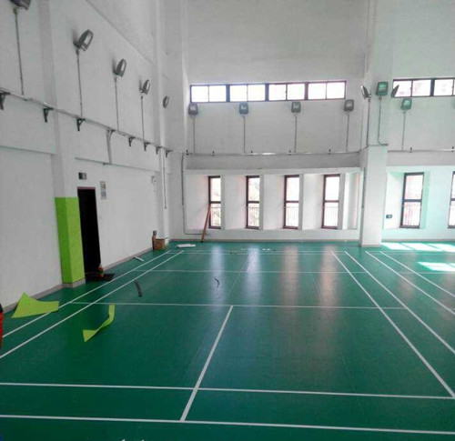 廣州市房屋開發有限公司室內PVC羽毛球場完成建設,目前已經交付使用!該公司選用4.5MM厚水晶沙PVC羽毛球場地膠鋪,該款耐磨層厚度為1.2mm,正常使用在6年以上。